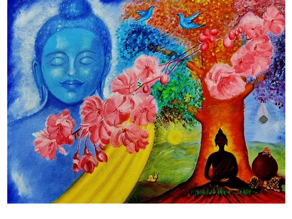 Gradually, I have moved from simple subjects and copywork to creating original compositions with intellectual themes and innovative color styles. Recently, I have been experimenting with acrylics, producing works ranging from everyday scenes to intellectually profound themes, merging the seen with the unseen in compositions that invite contemplation.